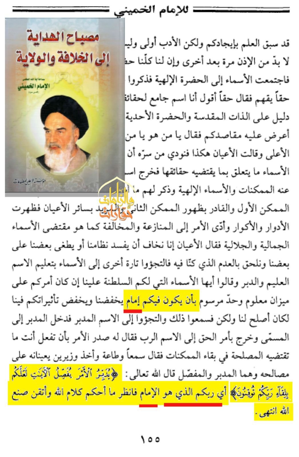 يقول شيخهم الخميني في كتاب مصباح الهداية إلي الخلافة والولاية ج2 ص115: