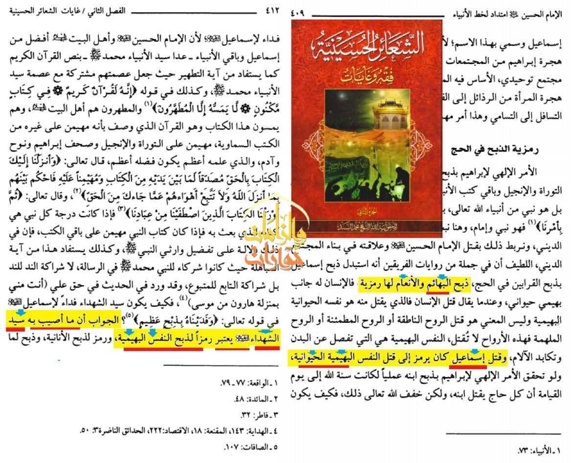 ويقول شيخهم البحراني في كتاب الشعائر الحسينية ج2 ص409:
